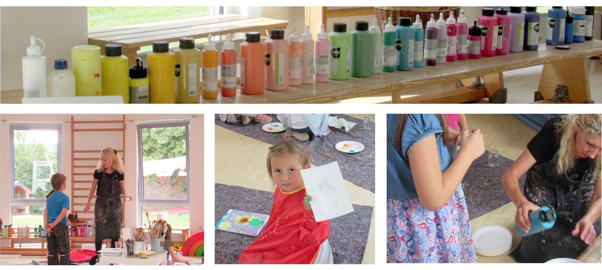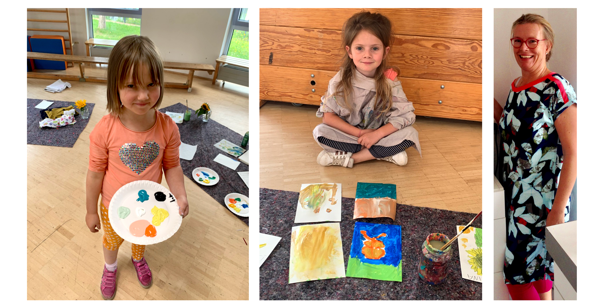 Zitat von Karin Schreck, Kindergartenleiterin: „Im Malkurs konnte jedes Kind zu sich finden, sie sind richtig zur Ruhe gekommen, zwischendrin war es ganz still, obwohl so viele Kinder mitgemacht haben. Nach Anregung der Künstlerin Jessica Hoesch, konnten die Kids richtig ihre Vorlieben und Fertigkeiten entdecken, sehr eigenständig gestalten und ihre Ideen wiedergeben. Ich war sehr freudig überrascht von den Ergebnissen, ganz toll."